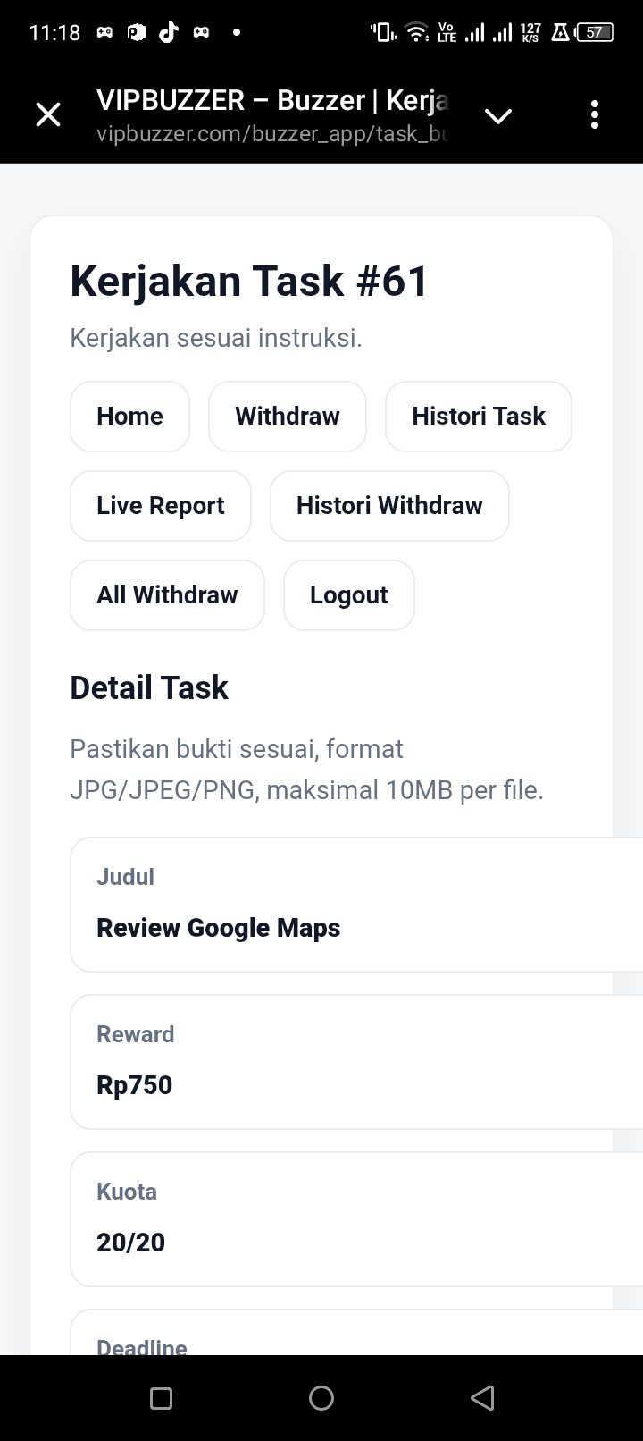 | No | Nama Buzzer | Status | Keterangan Ditolak | Bukti Akun | Bukti Pengerjaan | Bukti Validasi |